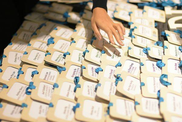 在施耐德电气全球创新峰会上,滨海湾金沙向责任商业论坛代表提供了由可回收材料制成的挂绳。