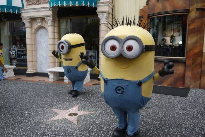 走在园中与跑出来跟大家互动的小黄人不期而遇,来,一起拍张全家福吧~