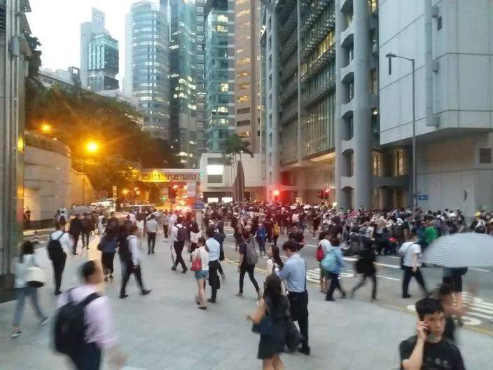 皇后大道中,人民如潮涌(右为汇丰银行总行)