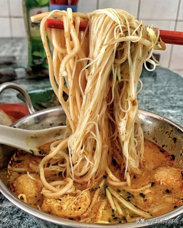 叻沙起源于新加坡土生华人菜,结合了当地南洋风情。由米粉,虾肉,鱼饼,豆干等组成。