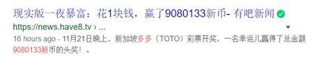 2019年11月21日,一个新加坡人买了一张彩票,中了9080133新币(约4500万人民币)的头奖。