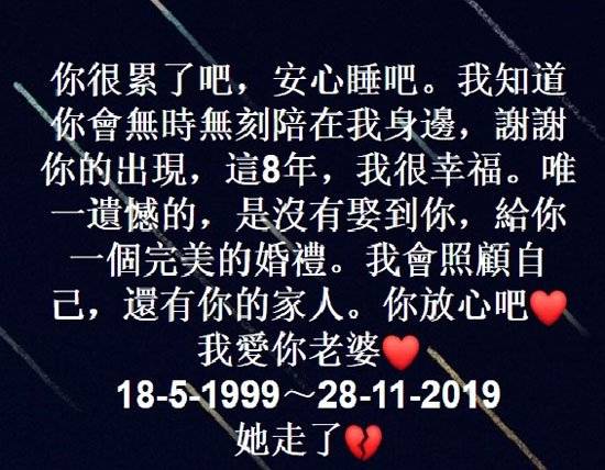 后来,女子近期准备再度动手术,男友也替她在面子书留言,希望众网友为她加油,引起了各界的关注,不幸的是,传出女子于今午5时48分逝世消息。