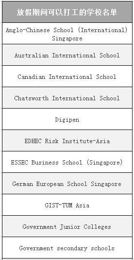 在读院校处于新加坡政府规定可以兼职的学校名单之中