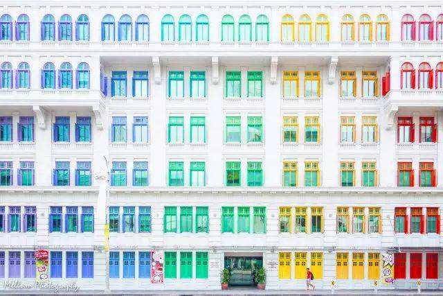 但这里为什么会成为一个网红打卡点?因为旧禧街警察局是新加坡最有特色的建筑之一,有浓厚的新古典主义风格,它拥有927扇彩虹般绚丽夺目的窗户,渐变色的百叶窗,绿色、红色、黄色和蓝色……新颖又极具活力。