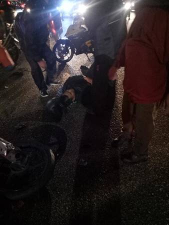 “在右边车道的两名摩哆骑士,翻覆后受伤,之后便被送往新山中央医院接受治疗,分别为55岁的新加坡籍男子及22岁本地男子。”