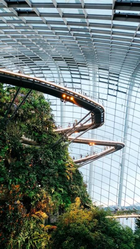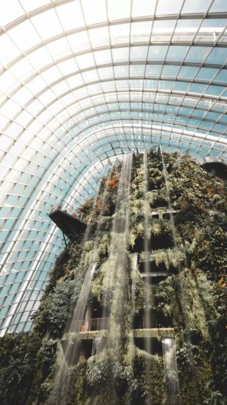 滨海湾花园大概是最能感受花园岛国气息的景点了,一眼看去满眼都是绿色。18颗擎天大树组成了独具一格的垂直花园,夜晚灯光亮起,仿佛进入阿凡达的奇幻世界。走进室室内的“云之森林”,7层楼高的瀑布飞流直下,真有种飞流直下三千尺的感觉。里面冷气很足,记得为宝宝带衣服哦。