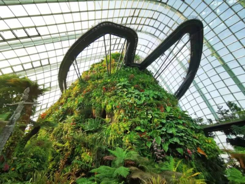 刚下了飞机在机场就能有这种体会。新加坡机场里是有很多室内绿化的,大到很高的树,小到一面墙的绿色小盆栽。即使有这么多植物,室内依旧很干净几乎没有蚊虫,起码对我来说是一种很奇妙的视觉感官体验。