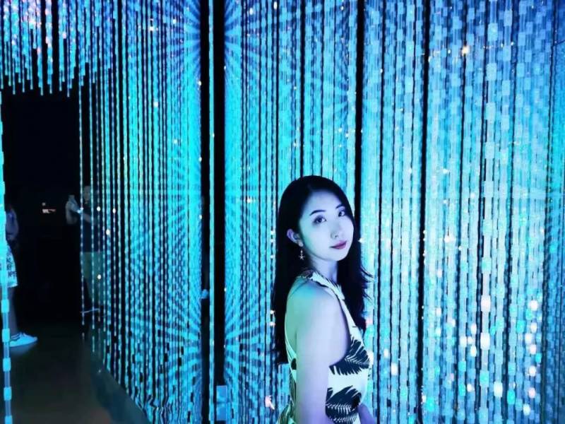 Teamlab是将声光装置和艺术融合在一起的概念。有滚动彩球就能发出不同音乐的装置,人站在电子瀑布下瀑布会自动散开,手触碰屏幕就可以点开一朵花。我觉得如果以前上学的时候能有机会多去看看这种展,可能会对科学产生更多的好奇心,而不是将科学和艺术放在对立面。