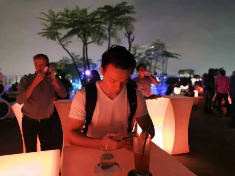 视野刚刚好能看到金沙空中花园这座标志性建筑,360度夜景全景也不在话下。酒吧在大厦的顶楼,是露天的,抬头能看到夜云漂浮在空中,伴随着DJ打碟的节奏流动,9点以后有band现场live,气氛超级棒。