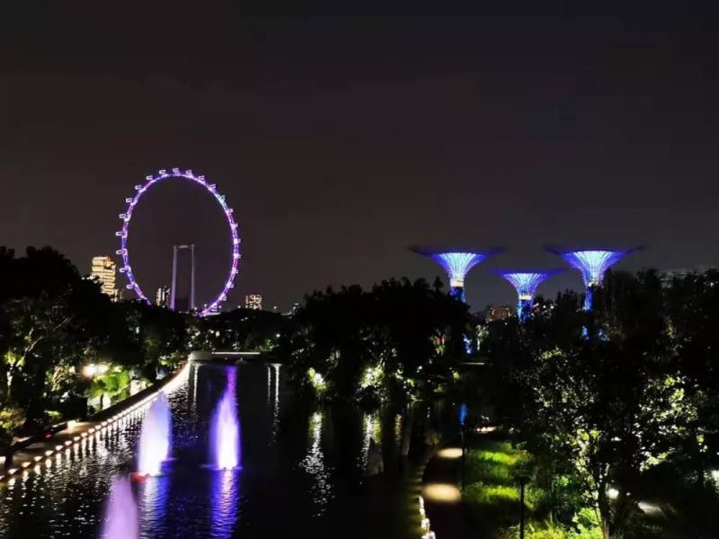 离开的时候在连廊的地方能远眺到摩天轮和远处的Supertree视角,也很美丽。