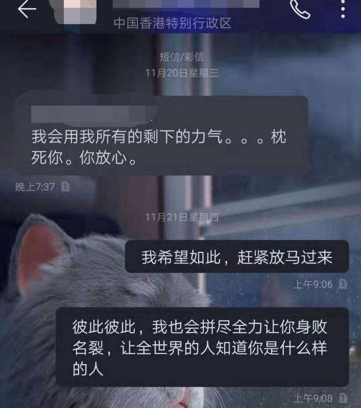 而小芳也发来一张图片,称上星期受到Tan的威胁......