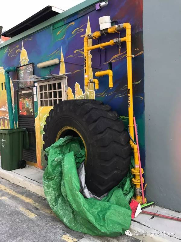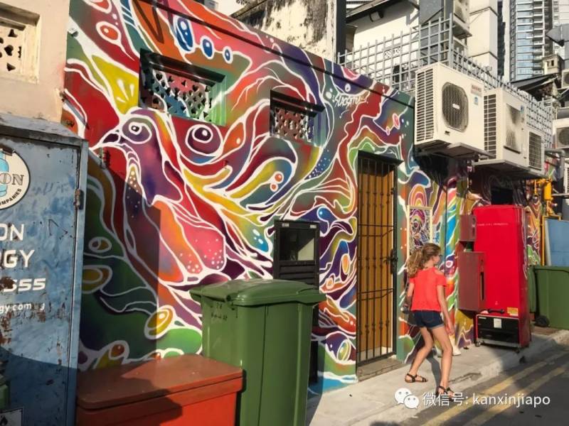 不过,转到另一边才发现涂鸦背面全是冷气机......与背景格格不入相当诡异。