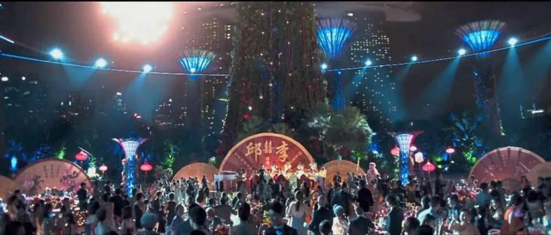 新加坡还有一个必打卡景点就是滨海湾花园的天空树了。去年火爆电影院叫好又叫座的电影《那些疯狂的亚洲有钱人》有场花了大手笔的戏就是在这里拍的呢,给大家感受下: