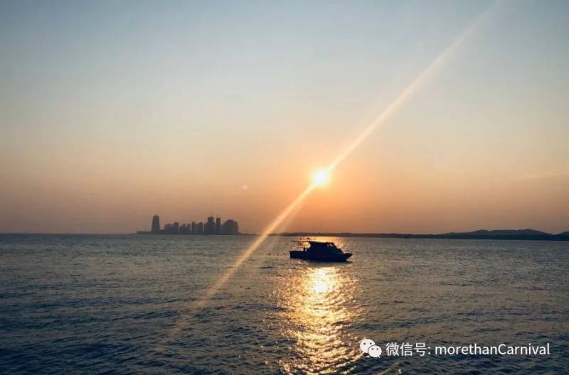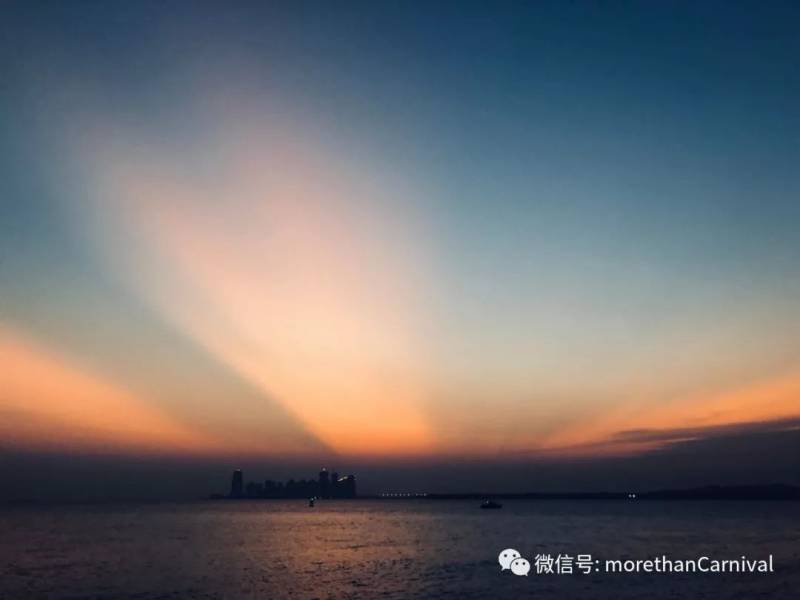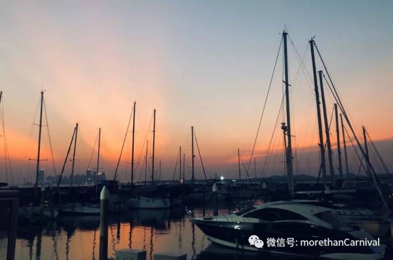 伴着最后一点点落日的余晖离开码头,桅杆撑起了暗红色的夜幕。