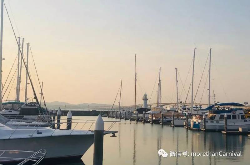 码头上停满了海军俱乐部的游艇,远处的灯塔隐匿在游艇的桅杆丛中。