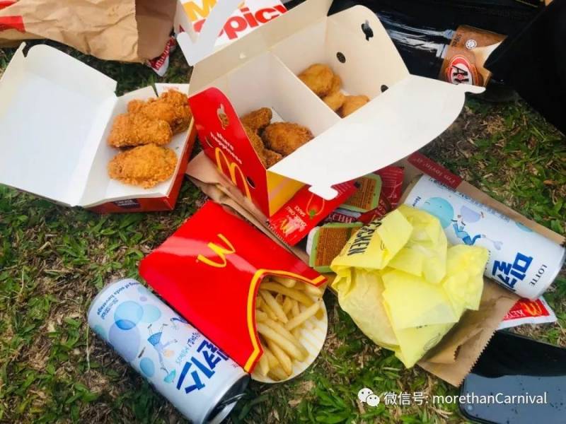 这场音乐节是韩国大使馆主办的,主办方还提供了免费的韩国饮品供观众领取。和旅途中新认识的朋友坐在草地上听着音乐大快朵颐,找回了童年秋游的快乐。