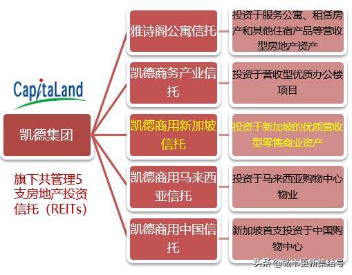 加坡上市房地产投资信托基金嘉茂信托是凯德商用旗下的房地产信托基金,2002年7月在新加坡证券交易所有限公司上市的第一家房地产投资信托基金,也是市值最大的零售房地产投资信托基金,在新加坡为88亿新元(截至2019年3月31日)。凯德商用新加坡信托资产包括15家购物中心,2800个租户,地处新加坡核心市区及城郊,年度购物者流量达3.38亿。、