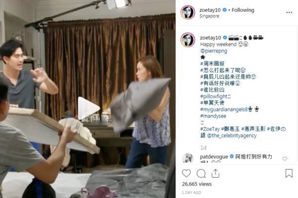 郑惠玉日前(30日)在社交媒体FB和IG上载一短视频,只见她和方展发相互动手,郑惠玉朝方展泼水,方展发一气之下,拿枕头朝阿姐处猛丢,阿姐吓得立即闪开逃跑。