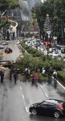 近期连日暴雨,就在11月20日,新加坡市中心的乌节路旁,也曾有大树在狂风暴雨中倒塌。