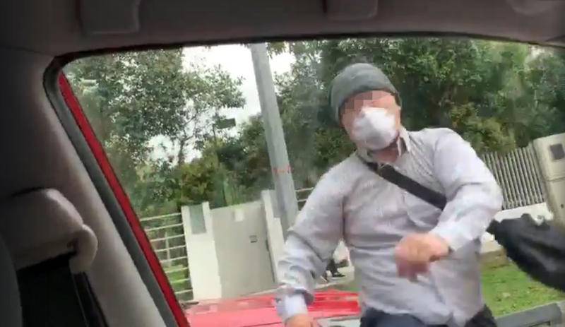 火爆德士叔冯战宁用手肘撞击他人车镜,又用脚踢车身,路霸行为在网上疯传。(档案照)