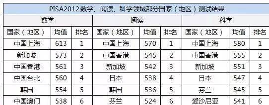 2012年排名:新加坡数学第二、阅读第三、科学第三。