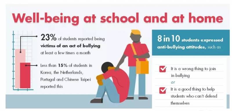 《PISA 2018 Results:WHAT SCHOOL LIFE MEANS FOR STUDENTS’ LIVES(VOLUME III)》展现了一组令人心痛的调查数据:23%的学生表示每个月会受到几次校园欺凌。