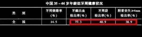 我国成年人的牙周健康率仅为 9.1%,牙周炎是导致我国成年人牙齿丧失的主要原因。