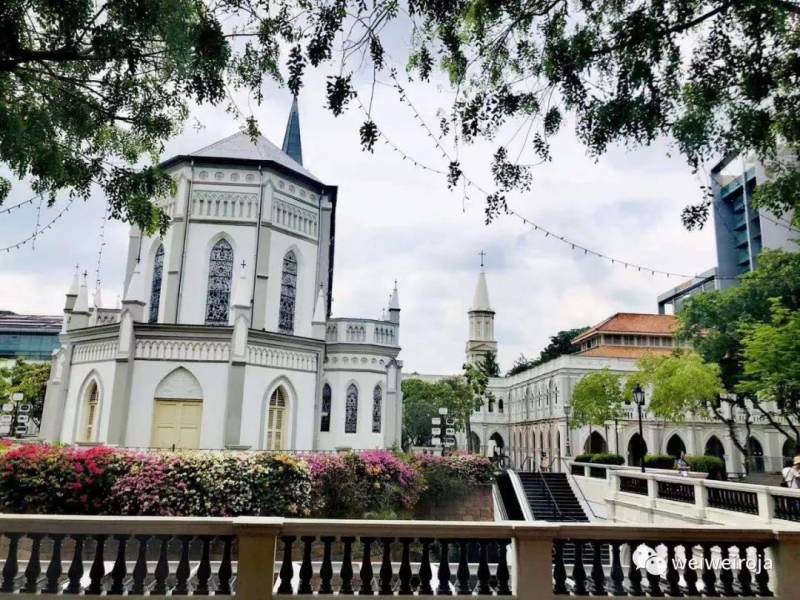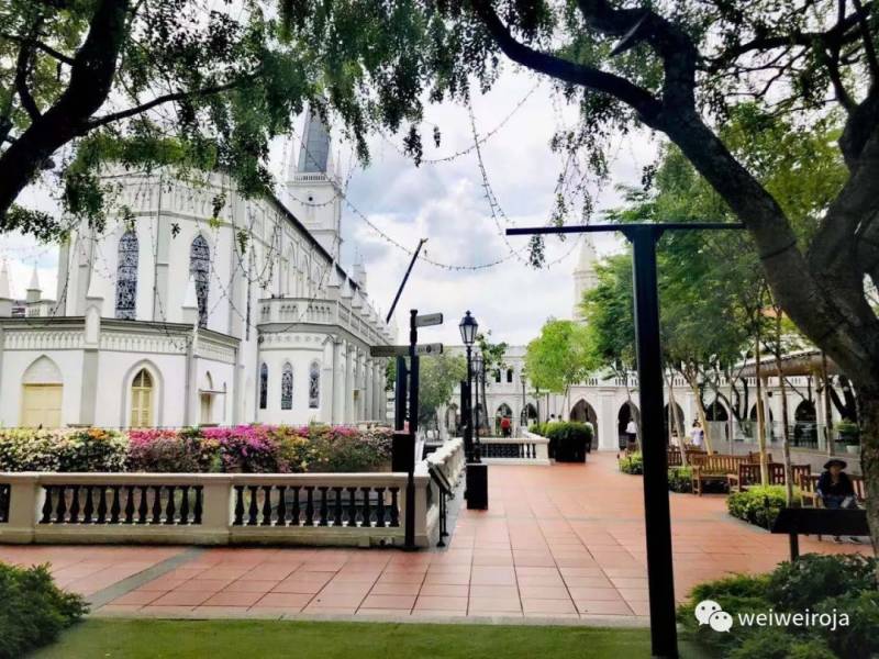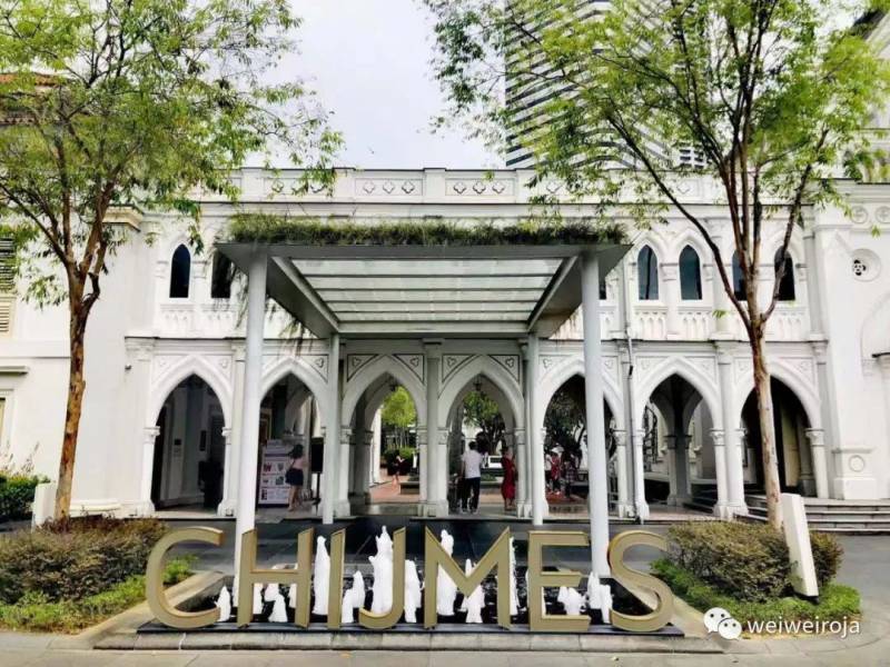 “赞美广场(CHIJMES),是世界上仅存的几个女修道院之一,是新加坡重要的历史古迹之一。其广场附近的建筑融合了现代和与五种新歌德式古典建筑,展现了现代中的旧世纪风格和特别的风味。由教堂改建的CHIJMES大厅经常演出音乐剧、独唱会及其他戏剧。天光渐暗时,这里的餐厅酒吧又开始热闹起来......”
