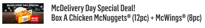 McDelivery Day邀你七折畅享麦乐鸡块,麦辣鸡翅,麦脆鸡排分享盒!【4.8-11】