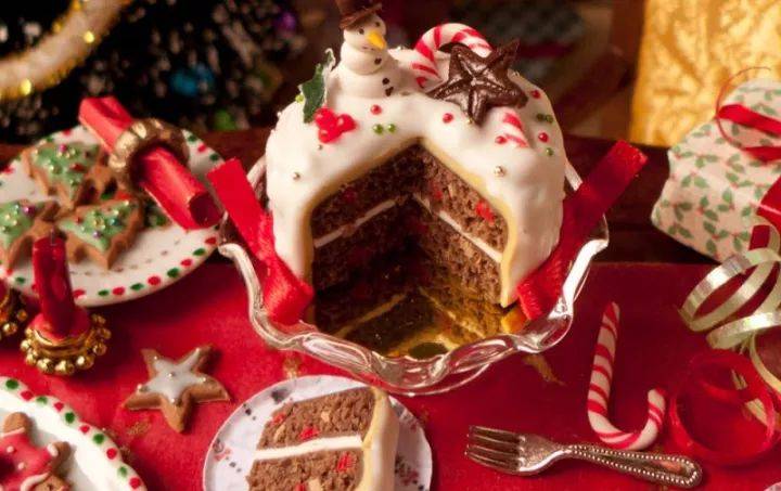 圣诞的晚餐怎么能少了气氛满满的圣诞主题蛋糕呢?是圣诞晚餐餐桌上不可少的部分。