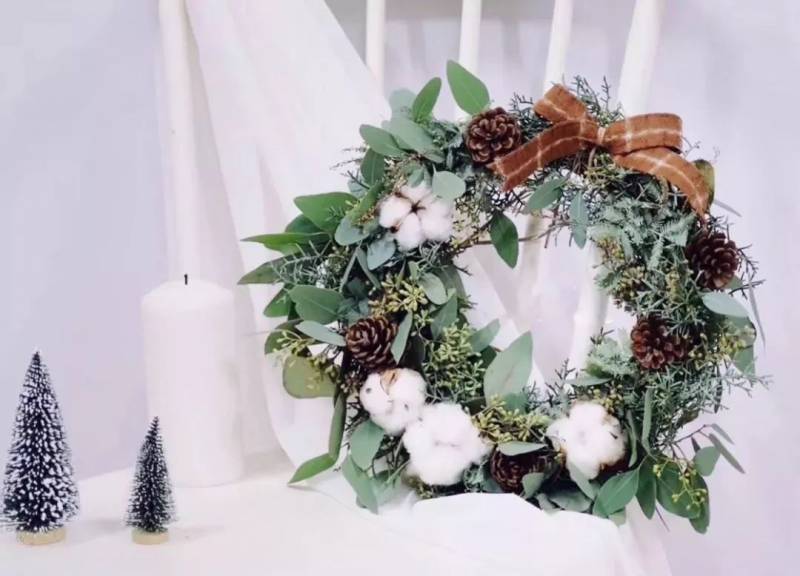 在新加坡黄金地段的cbd写字楼里,喝着红茶,用蓬蓬的棉花,暖融融的绒布玩偶,充满松树香气的松树枝,还有饱满的松果... ... 来装饰属于这个圣诞节的槲寄生花环。