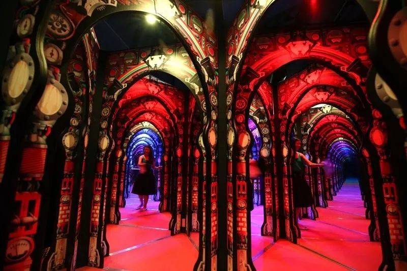 镜子迷宫能让家长和孩子在一起探索的过程中感受科学的魅力,促进亲子交流。(八岁以下儿童进入需有成人陪伴)