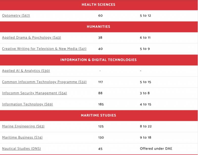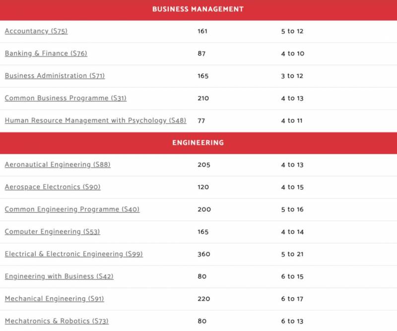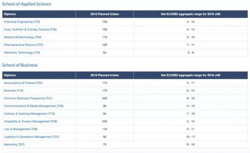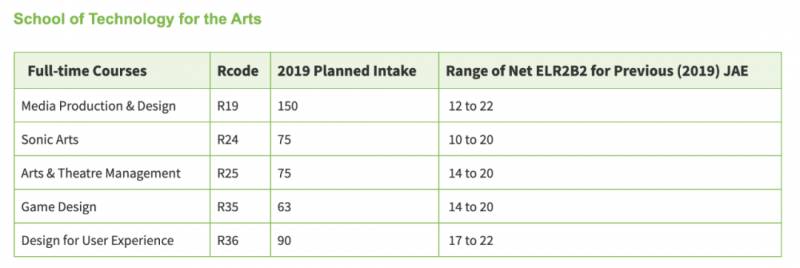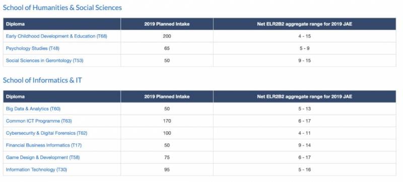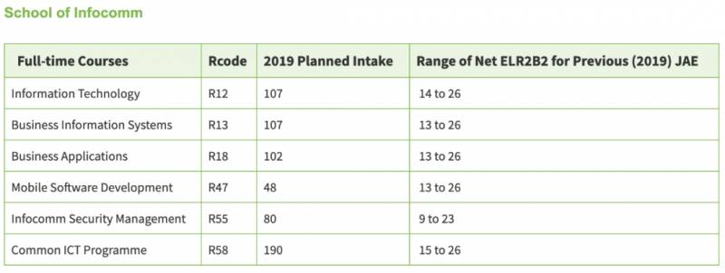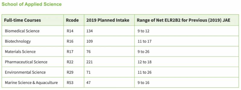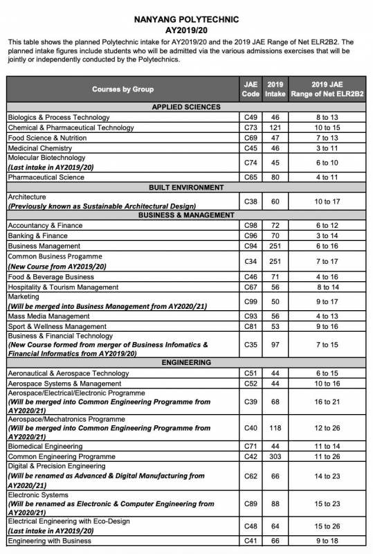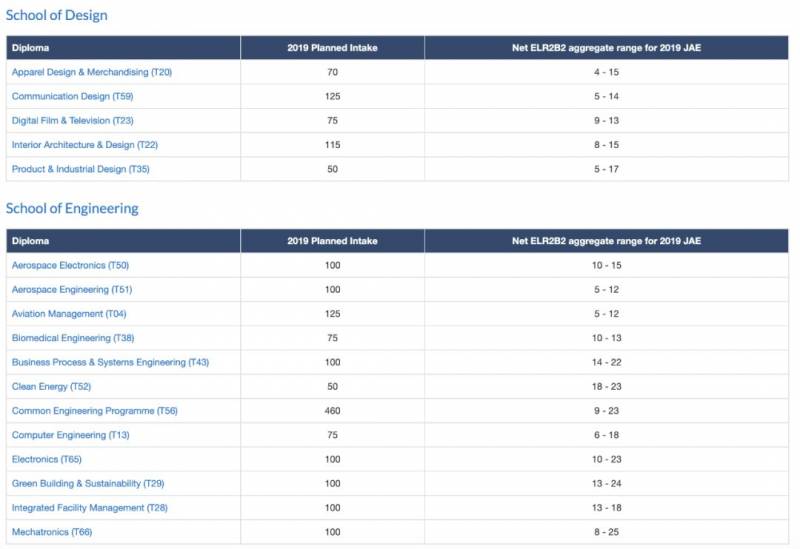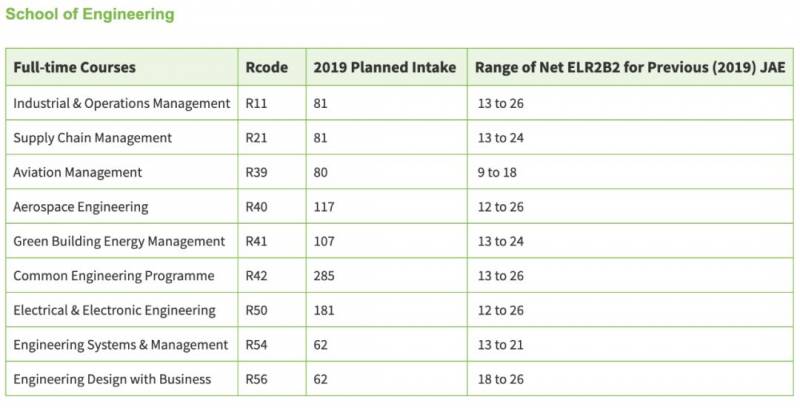 参考列表的2019 JAE ELR2B2显示通过2019年联合招生练习(JAE)(适用于新加坡-剑桥GCE'O'级资格)入学这些课程的最低和最高排名学生的总成绩。