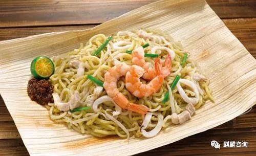 结合了东南亚当地的饮食文化。采用黄色的面条和米粉,加入虾仁、花枝、鸡蛋、猪肉、豆芽等食材一起反复翻炒,再淋上猪骨虾汤焖煮一会即可出锅食用。吃的时候还可以加入辣椒酱拌面,典型的福建人吃法,很香很可口。