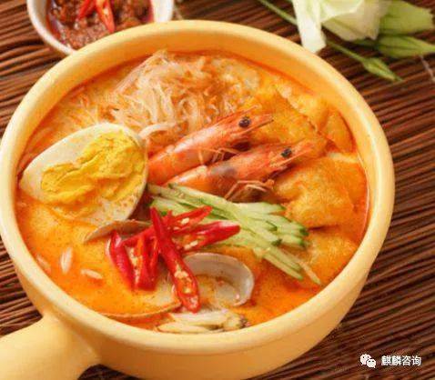 叻沙为代表性的“娘惹”独创菜肴。是新加坡的特色美食。是一种椰浆与辣酱味融合、搭配海鲜与热带香料的米线。