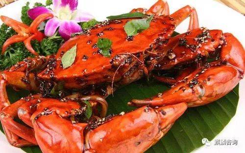 黑胡椒蟹是中餐和西餐相结合的一种创新菜,有炒和烤两种。黑胡椒香料恰如其分地渗入肉中,有新加坡菜典型的口味浓郁的风格。