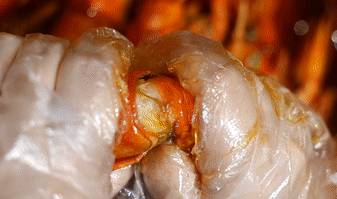 将小龙虾掰开,鲜嫩的虾肉露出来