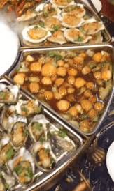 老虎虾、生蚝、扇贝、海螺、花甲 ......