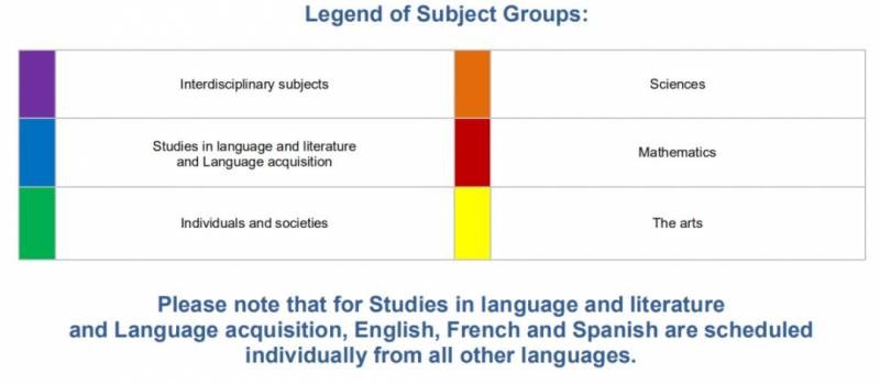 IB文凭考试一共有六个学科组,学生需要从每组中选择一门课程,此外还要完成4000字论文以及参加150个小时的社区活动。
