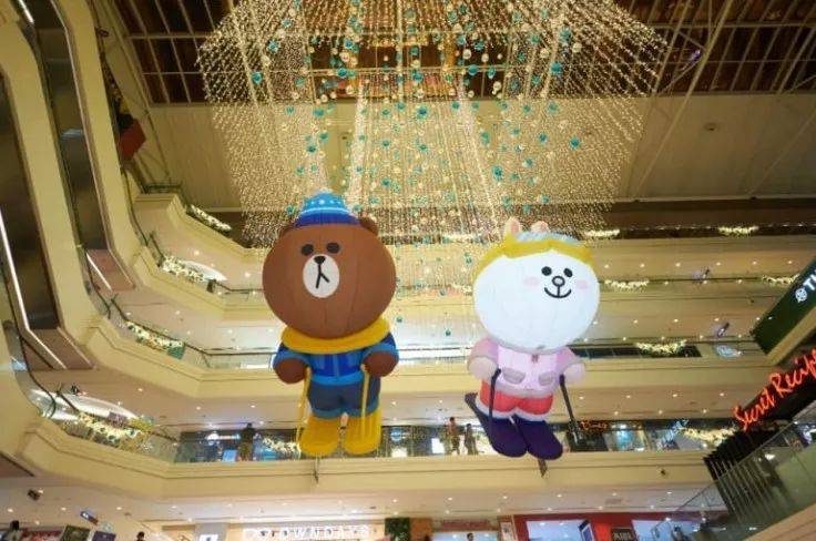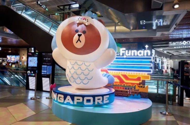 Funan和Bugis+的亮点是2.55米高的BROWN、1.6米高的CHOCO,还有具新加坡元素的鱼尾狮和红头巾模型。