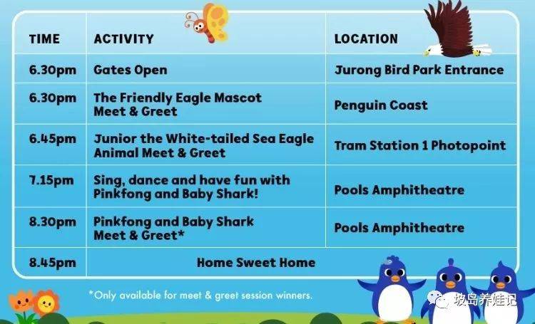 这周末和下周末的飞禽园,将迎来Pink Fong和鲨鱼宝宝的丛林冒险。活动从闭园后6.30pm开始,各种见面会,唱歌,跳舞,一整晚的冒险Party,是这个假期孩子们活动的开始~