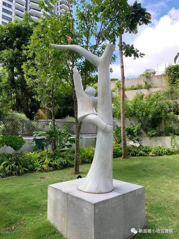 随处可见的景观和艺术小品,令人禁不住驻足欣赏。雕塑与绿植毗邻相望,仿佛也被赋予了生命,一花一叶总关情。最好的建筑就是这样,我们身处其中,却不知道自然在哪里终了,艺术在哪里开始。