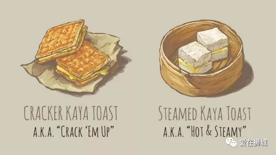 两片炭烤或烘烤面包,裹上冷冻牛油(也称 “黄油”)外加厚厚一大抹以椰浆椰果和鸡蛋烹煮调制而成的浓郁咖椰 (kaya) 抹酱; 再搭配一杯香醇的南洋 “kopi”(咖啡)或 “teh”(茶),堪称一道完美的新加坡道地小点。