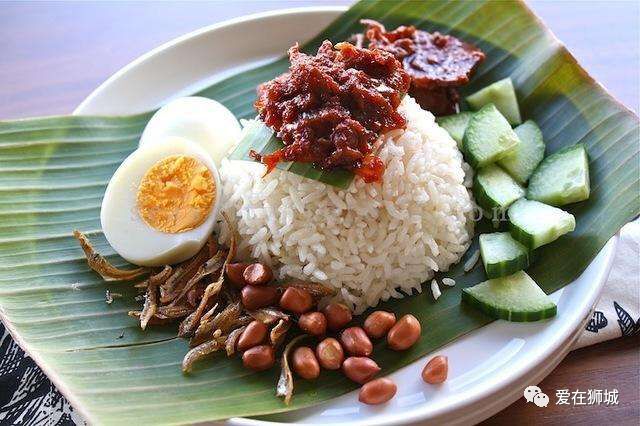 这道菜拥有完美的混合风味:椰奶和香兰叶浸透香米,佐以油炸鱼或炸鸡翅、乌打 otah(香辣烤鱼饼)、炸江鱼仔(本地鳀鱼)、花生、鸡蛋、黄瓜片,和参峇酱(辣椒酱)。