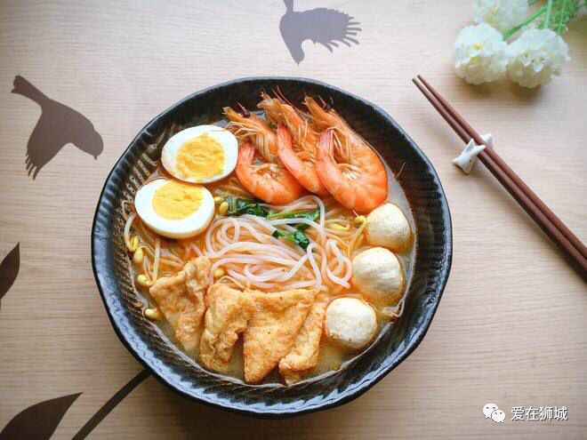 这道小吃也称 “福建面”,秘诀尽在以猪骨和虾头熬制的香浓高汤里。