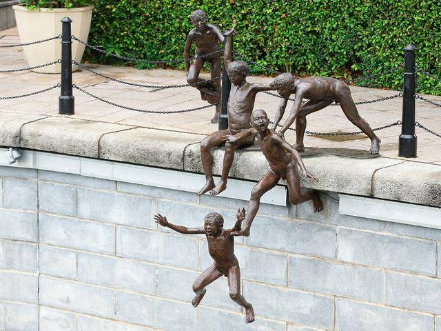 在城市周围可以找到许多新加坡雕塑家张发昌的作品,这位开创性的雕刻家主要使用木材,青铜和石材。他最好的(也是最受欢迎的)作品之一是这座新加坡第一代雕塑,描绘了旧时五个男孩跳入新加坡河玩乐,而在当时苦力是新加坡劳动力的支柱。