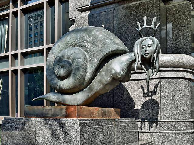 蜗牛女王(Snail Queen),是另一座超越思维空间的创新青铜雕塑作品,与装饰艺术风格的Parkview广场(也称为Gotham建筑物)完美融合。然而,这件作品实际上是香港房地产大亨黄宗宪的私人艺术收藏的一部分。