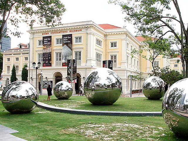在亚洲文明博物馆外的草坪上,巨大的反光球赫然显眼夺目,远处看上去,像是几个明亮的月亮降落在此,此时有种走进科幻片的感觉。几个圆形反光球也代表了人们圆圆满满的心愿,激动得赶紧拿出相机把这瞬间捕捉进自己的人生记忆库。