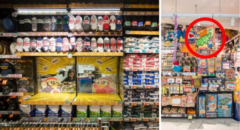 沿袭Donki传统,店内的各种宣传招牌,都出自Donki自家店员之手。例如售卖袜子和衣物的区域,有个橱窗可供观赏店员绘作宣传招牌。