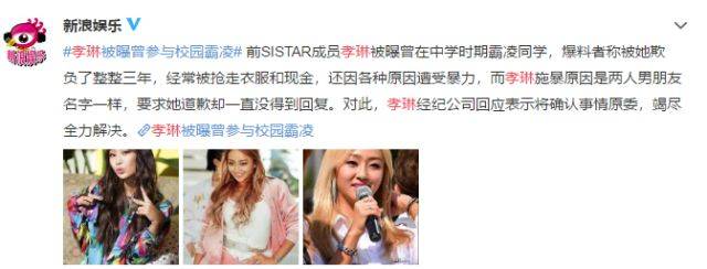 称自己曾长期受到前Sistar成员孝琳的霸凌